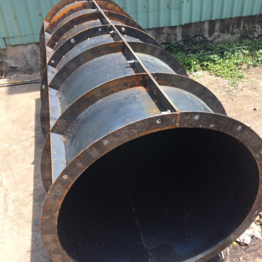 Đây là loại cốp pha có cấu tạo bao gồm hai mảnh có hình dáng bán nguyệt được ghép lại với nhau với kích thước: phần mặt tole là 2mm, phần khung xương có V4 độ dày khoảng 4mm, cốp pha định hình với dạng cột tròn.