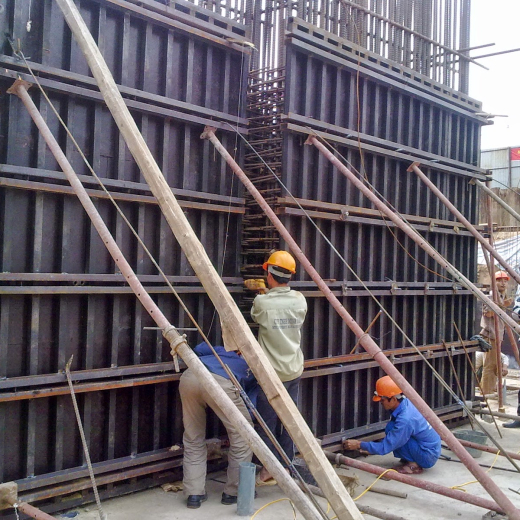 Một trong những ứng dụng chính của ván ép phủ phim trong thi công xây dựng là sử dụng làm ván khuôn đổ bê tông. Ván khuôn là cấu trúc dùng để giữ bê tông trong quá trình đổ và định hình cho bê tông khi nó khô cứng. Ván ép phủ phim được ưu chuộng trong vai trò này nhờ vào các đặc tính sau: